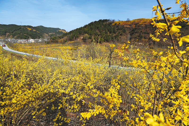 朵朵金黃的連翹花,不僅裝飾了山谷,成了當(dāng)?shù)剞r(nóng)戶(hù)的“致富花”,也吸引了越來(lái)越多的游客前來(lái)觀(guān)賞,連翹谷成了遠(yuǎn)近聞名的網(wǎng)紅打卡地。