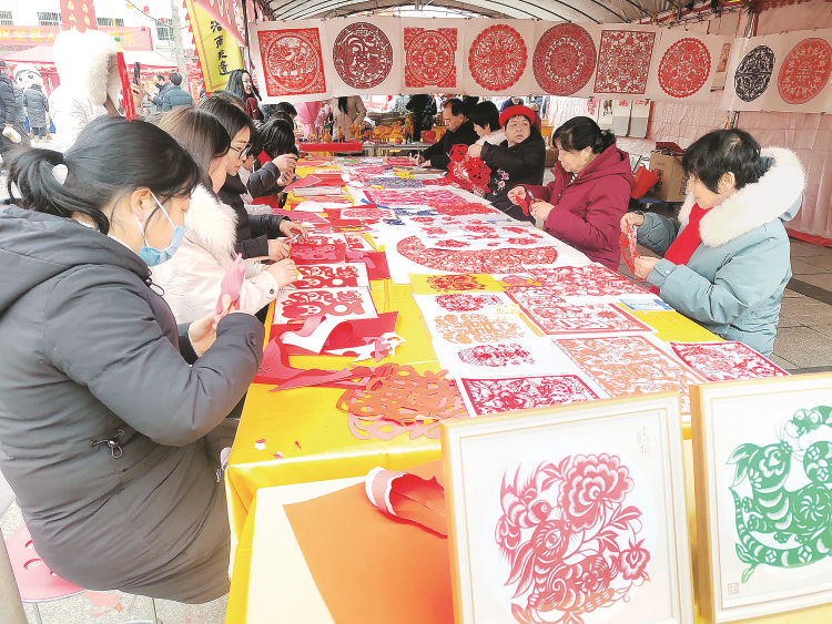 群眾在攤位學習剪紙