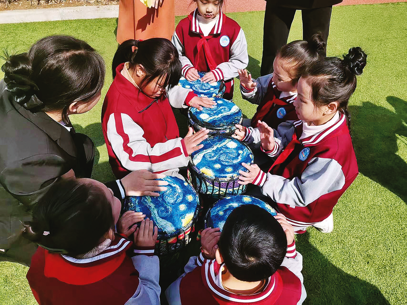 孩子們學(xué)打非洲鼓