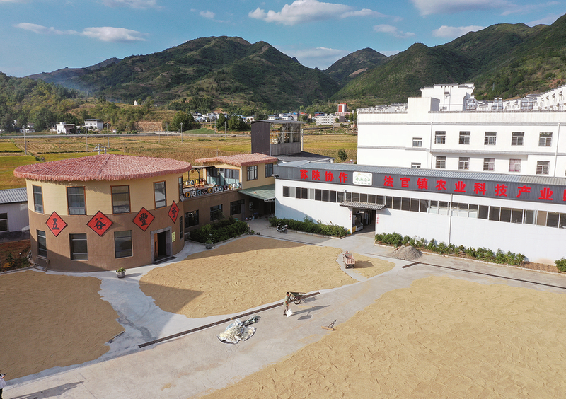 在位于姚灣社區(qū)的陜西丹山源農(nóng)業(yè)科技有限公司廠區(qū)內(nèi),攤晾著大片剛剛收割下來的金黃色的稻谷。“今年水稻收成很好,因為雨水、日照等都很充足,畝產(chǎn)500公斤左右。”陜西丹山源農(nóng)業(yè)科技有限公司分管水稻基地的廠長諶顯則說。