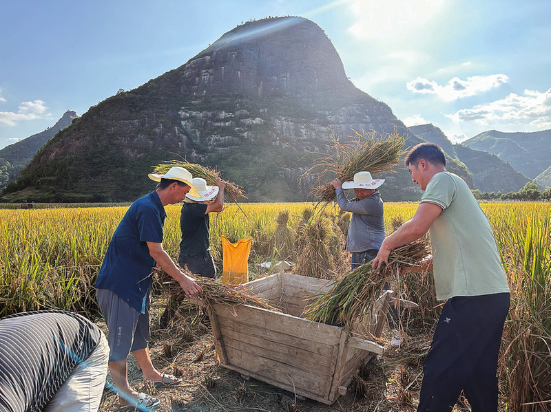 皮膚曬得黝黑的村民馬輝財憨厚地笑著,露出一口白牙。他已經(jīng)64歲了,通過在水稻基地務工,實現(xiàn)了在家門口就業(yè)。“我家離這里不遠,從水稻基地建成起就在這里干活了。最近的工作主要是對水稻進行收割和晾曬,工資按天結(jié)算,一天能掙100元。”
