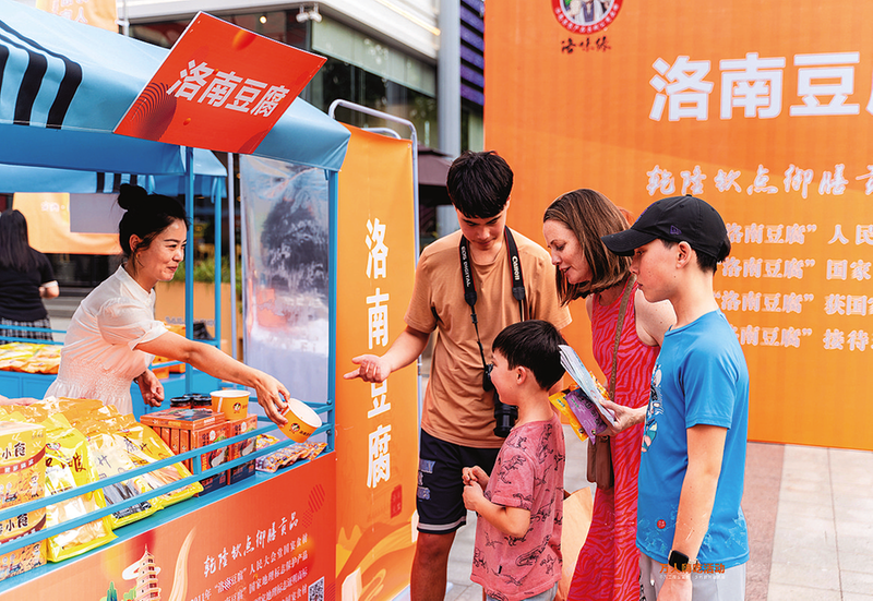 游客購(gòu)買洛南豆腐