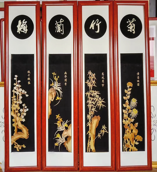 麥稈畫制作工藝復(fù)雜,全憑手工完成。首先是選稈,要確保麥稈質(zhì)地堅(jiān)韌、色澤純凈。接著經(jīng)過熏、蒸、漂等工序,去除麥稈的雜質(zhì)與異味,使其變得柔韌潔白,宛如待雕琢的璞玉。隨后,刮、燙、剪、刻等技法相繼登場。燙色環(huán)節(jié)尤為關(guān)鍵,藝人手持烙鐵,以手控溫,在麥稈上勾勒出線條、暈染出層次,溫度稍有偏差,便會前功盡棄。正是這一道道精細(xì)工序,賦予了麥稈全新生命。