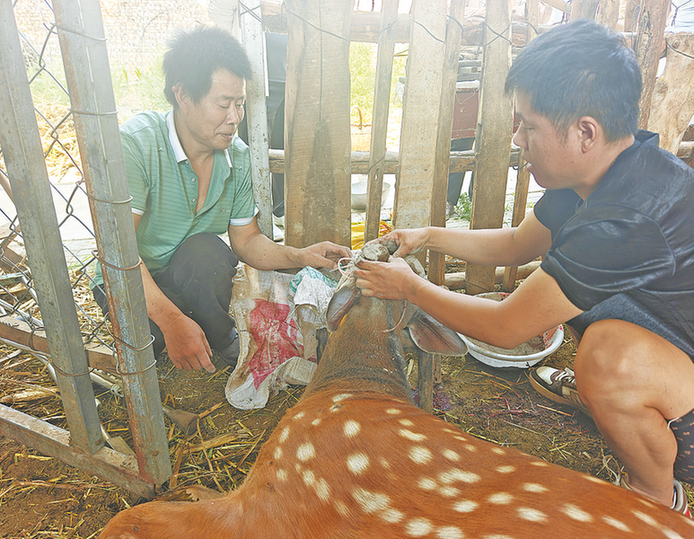 “再有半個月母鹿就要生產(chǎn)了,接生時一定要注意觀察……”6月11日中午,在洛南縣景村鎮(zhèn)景豐村董建良家的院子里,張朋濤在幫其割鹿茸后準備返程,臨行前,他反復(fù)叮囑。