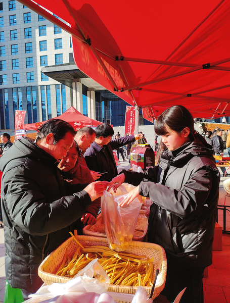 在洛南縣2026年“來洛南趕大集 品山城煙火味”活動現(xiàn)場,本地腐竹憑借優(yōu)良品質(zhì)贏得群眾青睞,引得大家爭相選購。