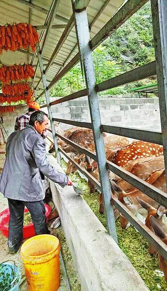 有人提出疑問:一個(gè)羸弱貧困的一家人在短時(shí)間內(nèi)能夠脫貧,吃的是什么神丹妙藥?就這家而言,答案很明顯。一是緊緊抓住國家實(shí)施“脫貧攻堅(jiān)”這一千載難逢的最佳機(jī)遇,為興辦產(chǎn)業(yè)“輸血”。從享受政府擔(dān)保貼息,國家產(chǎn)業(yè)專項(xiàng)補(bǔ)貼和資金幫扶政策,到社會(huì)各界聚力包扶。如:商南縣朝陽集團(tuán)雨力潔公司、清油河電管所、試馬上蒼鹿業(yè)公司等單位采取企業(yè)賒本讓利的方式,從人力、物力、財(cái)力、免費(fèi)技術(shù)指導(dǎo)和培訓(xùn)上鼎力相助,總計(jì)從中獲利達(dá)25萬余元。解決了辦場資金短缺的燃眉之急;二是通過“借鹿還茸”和“售茸見利”的模式不僅以鹿茸抵清了借鹿的成本,而且還清了部分的外債,為自身產(chǎn)業(yè)“造血”。這是靠勤勞的雙手辦好產(chǎn)業(yè),短期已初見成效。今年7月的一天,有位在鹿場看鹿的熟人開玩笑地說:“明龍,鹿喂得膘肥體壯的,你咋瘦了呢?”他風(fēng)趣地說:“有錢難買老年瘦啊!”并接著說:“現(xiàn)在干啥都不容易呀!為了這群鹿,我春夏兩季天天忙于上山打構(gòu)葉、割青草;秋冬季節(jié)日日上山撿樹葉,到處收花生桿、紅薯藤儲(chǔ)存粗飼料;晴天坡上干,雨天加工飼料,每天晚上10點(diǎn)前從沒有睡過覺,好在當(dāng)今有國家好的政策支撐,有干部傾力幫扶,再苦再累,我也心甘情愿啊!看著這群鹿的長勢,說明了勤勞的汗水沒有白流。”三是靠以辦好主體產(chǎn)業(yè)的同時(shí),采取與中、短期見效快的項(xiàng)目相結(jié)合的方式,為興辦產(chǎn)業(yè)“補(bǔ)血”。如:養(yǎng)雞、養(yǎng)兔、養(yǎng)母豬、爭取公益性崗位、短期勞務(wù)輸出等辦法拓寬增收渠道,增加收入。通過為產(chǎn)業(yè)“輸血”“造血”“補(bǔ)血”,才圓了百姓的脫貧夢。