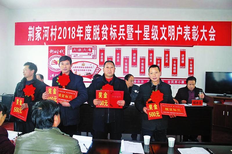 去年以來(lái),在學(xué)習(xí)宣傳中、省、市和縣鎮(zhèn)先進(jìn)典型的同時(shí),我們高度重視身邊先進(jìn)典型的培養(yǎng)、指導(dǎo)、挖掘和宣傳工作,僅2018年就在全村107戶貧困戶中打造出4個(gè)脫貧標(biāo)兵。一是黨員脫貧帶貧標(biāo)兵何衍杉。作為一名退伍回村黨員,他2014年被識(shí)別為貧困戶,在包扶干部幫助下依靠發(fā)展藥材種植,2017年就脫了貧,脫貧后他不忘黨恩,成立“寶豐中藥材專業(yè)種植合作社”,吸納17戶群眾種植藥材,幫帶7戶貧困戶陸續(xù)脫貧,受到了商南縣領(lǐng)導(dǎo)的夸獎(jiǎng)。二是自強(qiáng)自立的獨(dú)臂漢子汪仁喜。他16歲時(shí)不慎失去右臂,2017年被識(shí)別為貧困戶,但他依靠黨的扶貧政策開電磨坊、養(yǎng)豬、種香菇,2018年底徹底脫貧,在商南縣脫貧誓師大會(huì)上受到表彰獎(jiǎng)勵(lì),被譽(yù)為“立志脫貧標(biāo)兵”的榜樣。三是申請(qǐng)摘帽標(biāo)兵甘齊成。他因住房和女兒上大學(xué)2016年被識(shí)別為貧困戶,在干部幫扶和政策扶持下,通過(guò)釀造高粱酒和養(yǎng)殖土蜂蜜,兩年就脫貧致富了。2018年9月,他主動(dòng)遞交申請(qǐng)要求退出貧困戶,不再享受扶貧政策。四是替黨分憂回報(bào)社會(huì)的楊培斌。他2015年被識(shí)別為貧困戶,通過(guò)參加村實(shí)用技術(shù)培訓(xùn),利用產(chǎn)業(yè)幫扶資金和貼息貸款發(fā)展養(yǎng)豬、養(yǎng)羊和制作臘肉等,于2017年脫貧摘帽。脫貧后的楊培斌成立合作社幫帶5戶貧困戶也脫了貧,且向村支部遞交了入黨申請(qǐng)書,要求入黨替黨分憂,被樹為“脫貧致富心向黨、摘帽爭(zhēng)當(dāng)積極分子”標(biāo)兵。