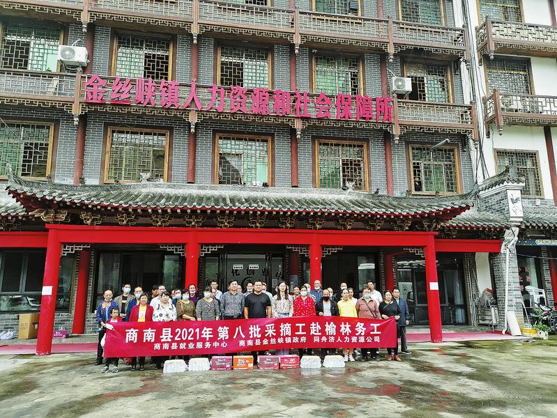 9月5日,商南縣就業(yè)服務中心聯(lián)合金絲峽鎮(zhèn)人民政府、商洛同舟濟人力資源公司,舉行2021年第八批采摘工赴榆林務工歡送儀式,現(xiàn)場為42名務工人員免費贈送了人身意外傷害保險,發(fā)放了生活用品。據(jù)悉,這批采摘工將安置到陜西榆林大地種業(yè)有限公司,從事兩個半月的撿土豆工作,日均工資150至180元,預計可實現(xiàn)人均增收1.2萬元。(桂青圓 攝)