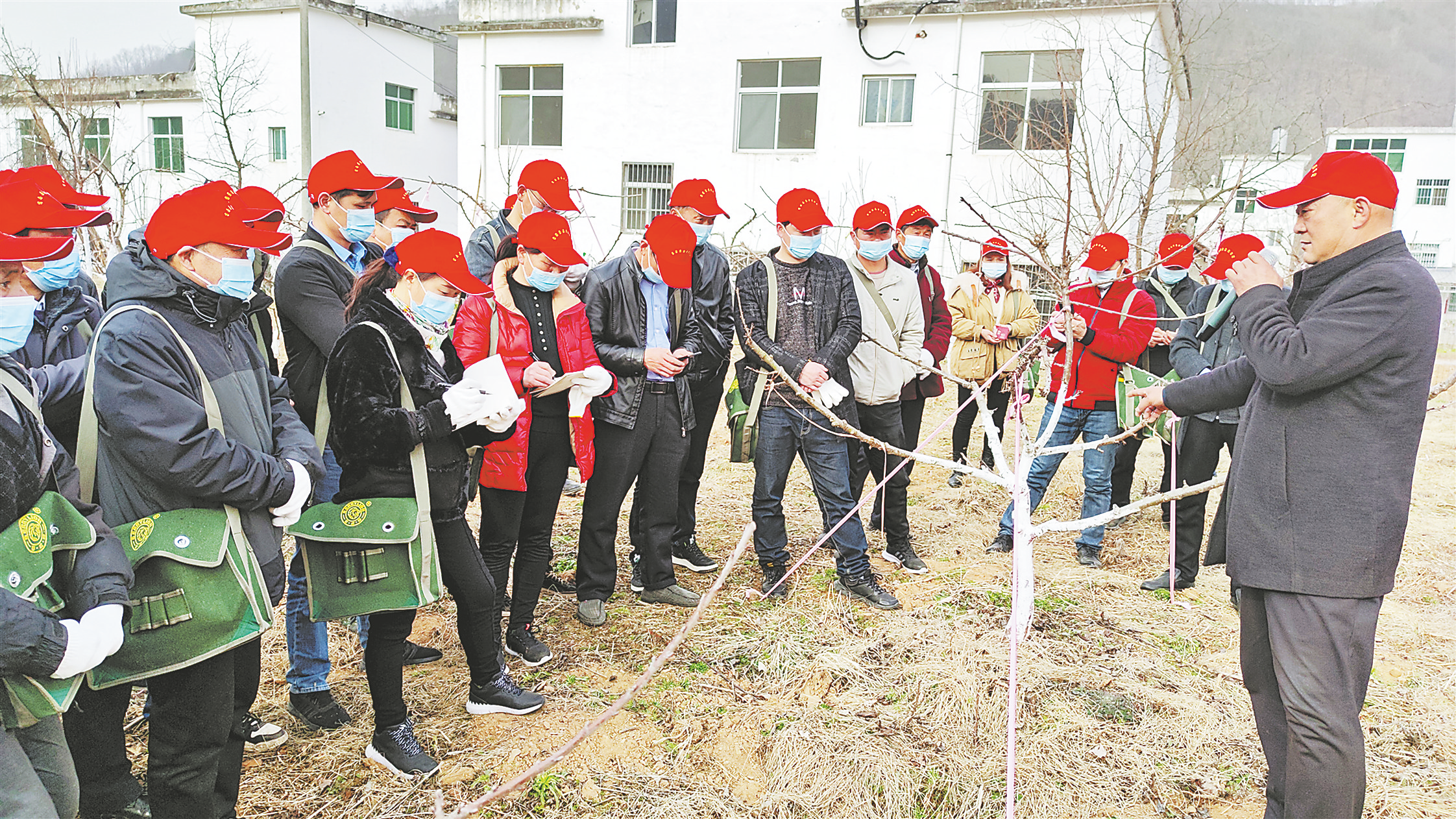 近期,商南縣農(nóng)業(yè)農(nóng)村局組織開展“科技服務(wù)三農(nóng)行”暨高素質(zhì)農(nóng)民林果科管培訓(xùn)班,邀請商南縣林果專家孟水平及果業(yè)基地技術(shù)人員對全縣果業(yè)種植戶及有意發(fā)展種植果業(yè)的群眾進(jìn)行技術(shù)培訓(xùn),提升果農(nóng)科管技術(shù),助力果農(nóng)豐產(chǎn)增收。圖為3月1日,林果專家及技術(shù)人員在商南縣過風(fēng)樓鎮(zhèn)小栗園大櫻桃基地,就果樹整形、修剪、拉枝、嫁接等方面向群眾講解先進(jìn)科管技術(shù),手把手進(jìn)行示范操作。 (代緒剛 攝)