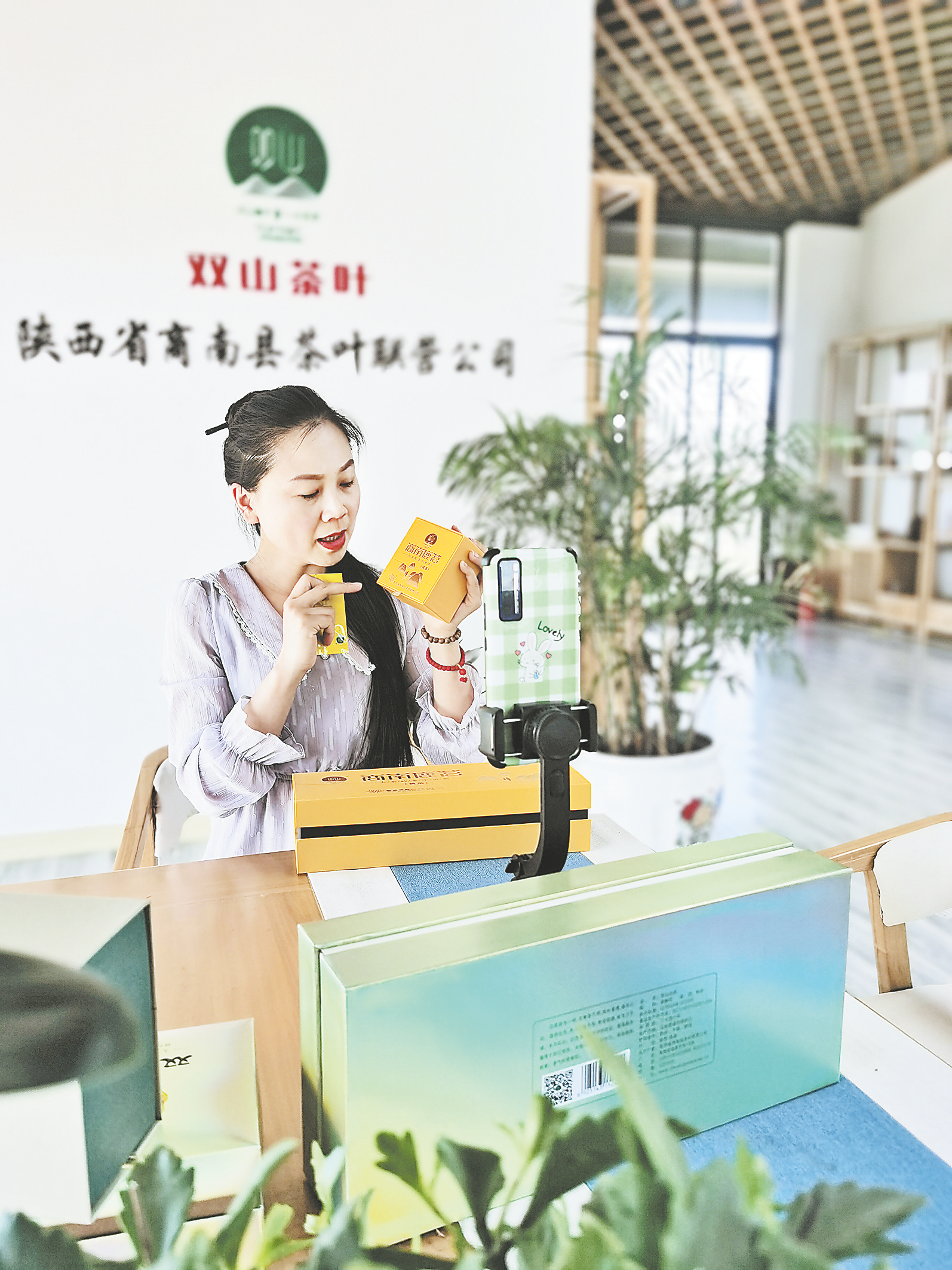 在商南縣城,網(wǎng)紅主播“程程你真棒”又開始了新一天的抖音直播,她一邊表演茶藝,一邊聲情并茂地講述著商南茶的歷史背景、種類、特點(diǎn)等。