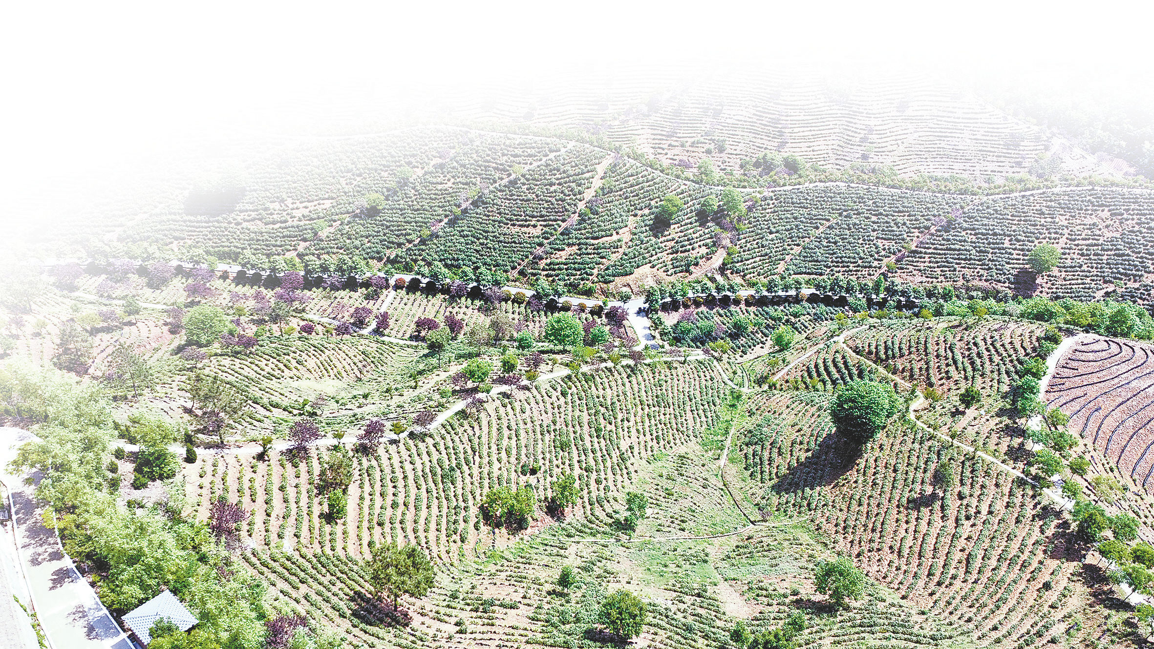 在試馬鎮(zhèn)馬泉山茶葉基地,一排排茶樹抽芽吐綠,綠色的茶山一座連著一座。誰能想到,過去的荒山變成了今日的茶園。