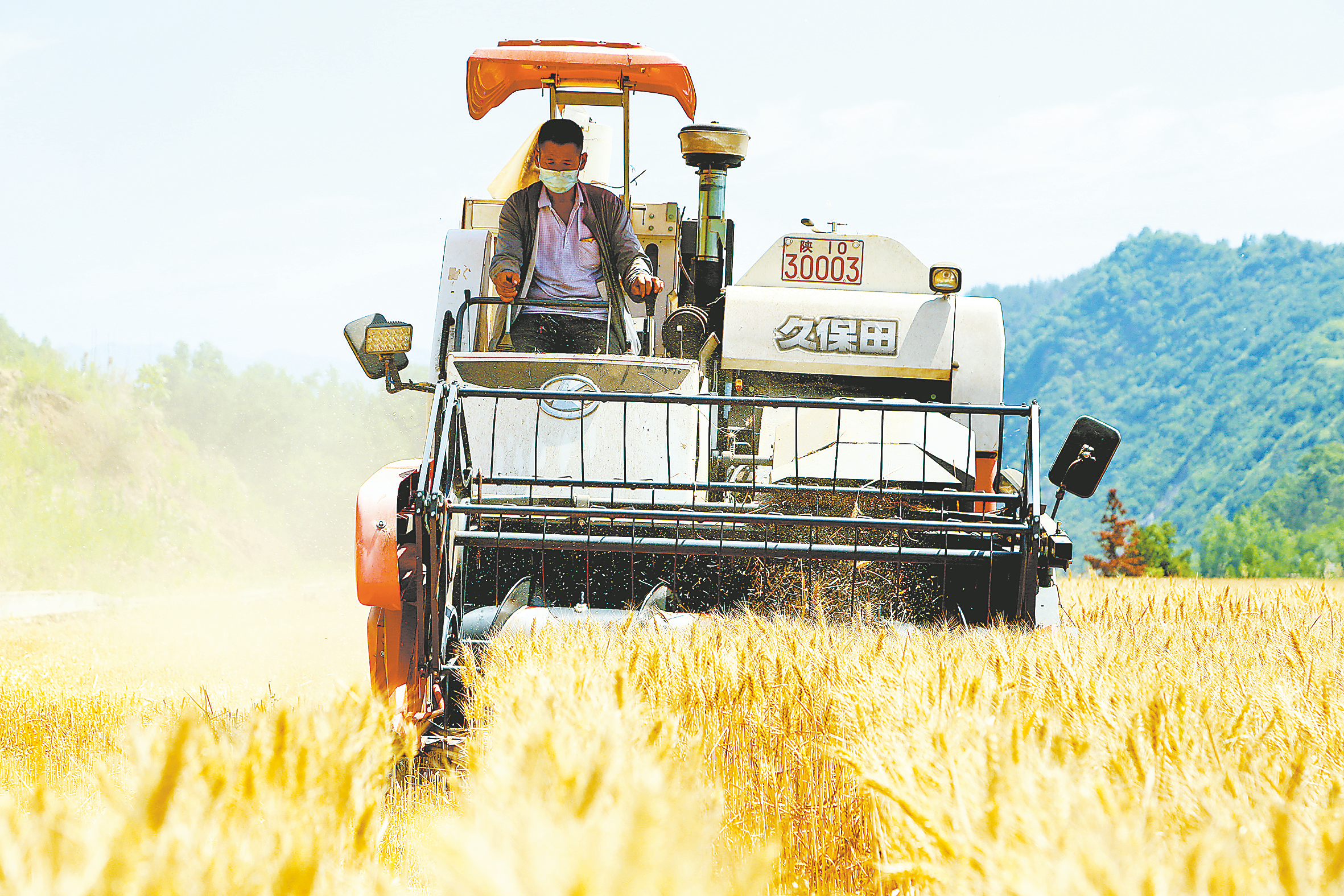 “這地方叫金雞嶺,你現(xiàn)在看到的成片麥地,都是我今年種的。在毛河村,我承包了200多畝地,幾乎都種上了小麥。”6月1日晌午,驕陽似火,在商南縣試馬鎮(zhèn)毛河村金雞嶺的地頭,村民明道德停下轟鳴的聯(lián)合收割機,一邊擦去滿臉的汗珠,一邊指著周圍成片的麥田說。