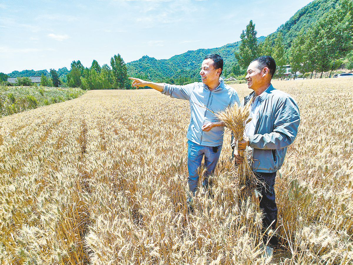 明道德(右)查看小麥長勢