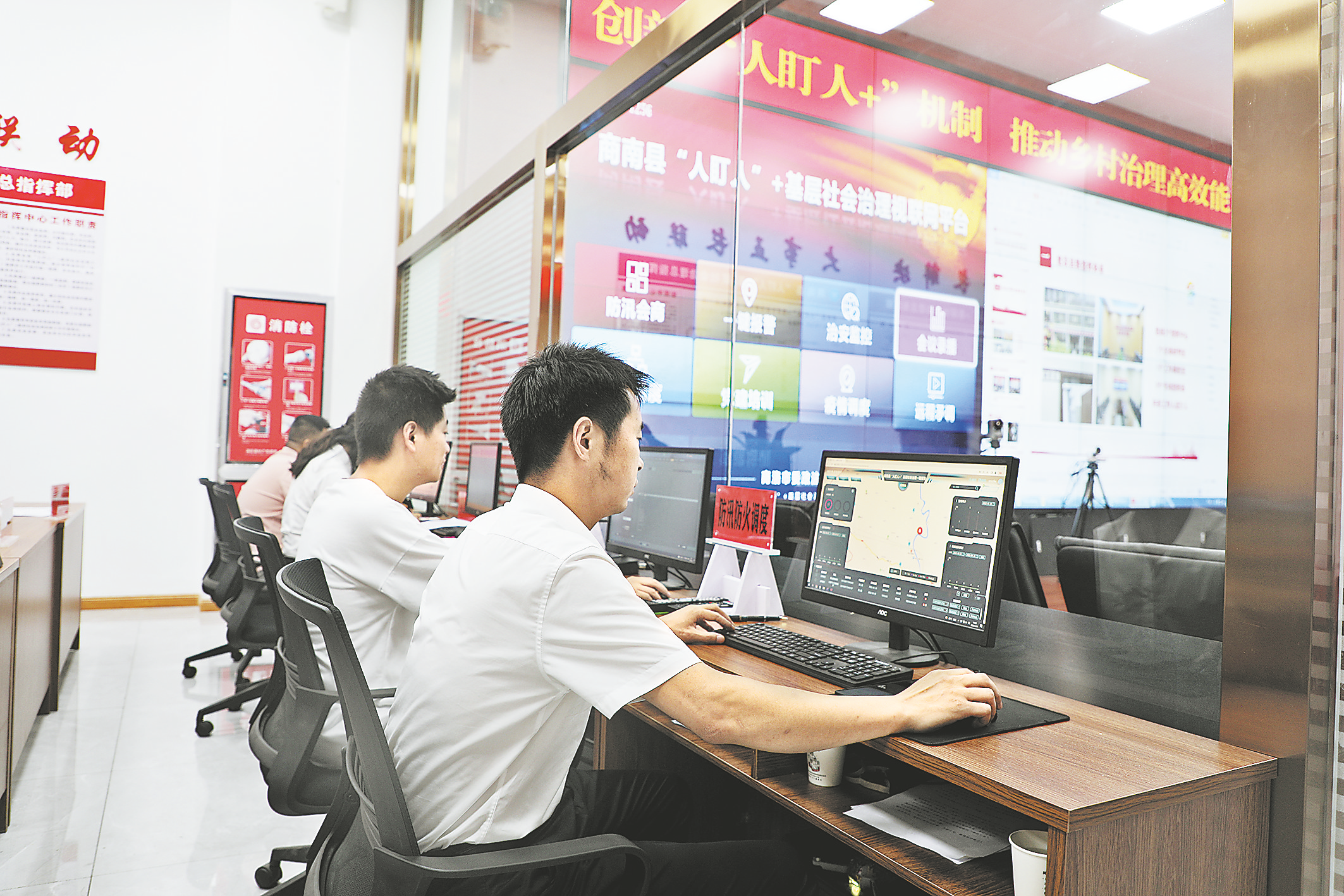 創(chuàng)新鄉(xiāng)村社會治理。該縣探索推行“人盯人+”社會治理機制,在縣城南大街社區(qū)建成了“人盯人+”基層社會治理信息平臺,運用視聯(lián)網(wǎng),將縣上指揮部與全縣10個鎮(zhèn)辦、126個村社區(qū)連接起來,實現(xiàn)了多個治理目標。其中,防返貧監(jiān)測方面,借助手機客戶端視頻連線,調(diào)度指導(dǎo)村級網(wǎng)格員入戶查驗農(nóng)戶收入、“兩不愁三保障”和飲水安全、突發(fā)事故等返貧致貧風險,按程序識別納入監(jiān)測對象,跟蹤開展幫扶工作,確保不出現(xiàn)返貧致貧現(xiàn)象;治安聯(lián)防方面,接入全縣視頻監(jiān)控系統(tǒng),做到了全域覆蓋、全網(wǎng)共享、全時可用、全程監(jiān)控,能夠做好特殊人群、關(guān)鍵部位監(jiān)測,發(fā)現(xiàn)上報社會治安隱患,及時防范并精準打擊。運用這個信息平臺,還可以遠程調(diào)解群眾的矛盾糾紛,實時掌握全縣地質(zhì)災(zāi)害點監(jiān)測員的監(jiān)測情況,等等。