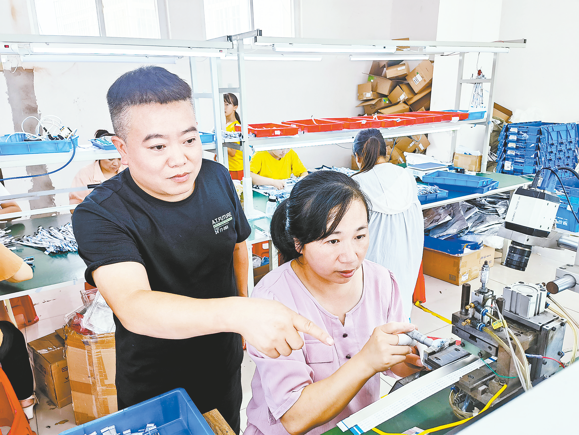 “這些年特別感謝吳總,我以前在家沒事干,沒有目標(biāo),經(jīng)常去打麻將,家里大小事也不操心,現(xiàn)在在這上班之后,跟著吳總學(xué)技術(shù),掌握一門手藝,有目標(biāo)了,日子越過越有奔頭了……”今年43歲的吳超如今在商洛市浩盈輝電子有限公司上班,說起現(xiàn)在的生活,感激之情溢于言表。