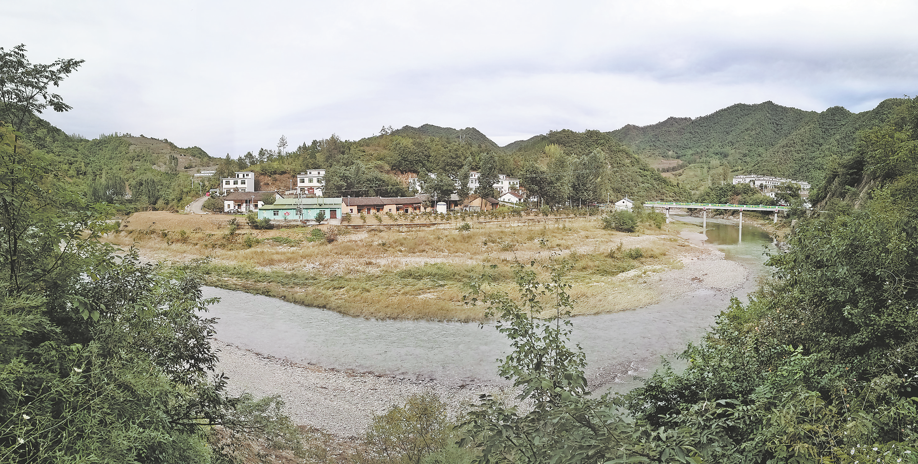 武關(guān)河在蟒嶺、流嶺間奔突,一路S奔向丹江,湘子嶺左攔右擋,在二郎廟村深度切割出一個天然的太極圖來。每當(dāng)暴雨過后,武關(guān)河總是上演著把河邊田地變?yōu)樯呈癁┑囊荒唬瑳_走了莊稼和收成。千百年來,二郎廟村民依水而生,擇水而居,在武關(guān)河畔討溫飽。
