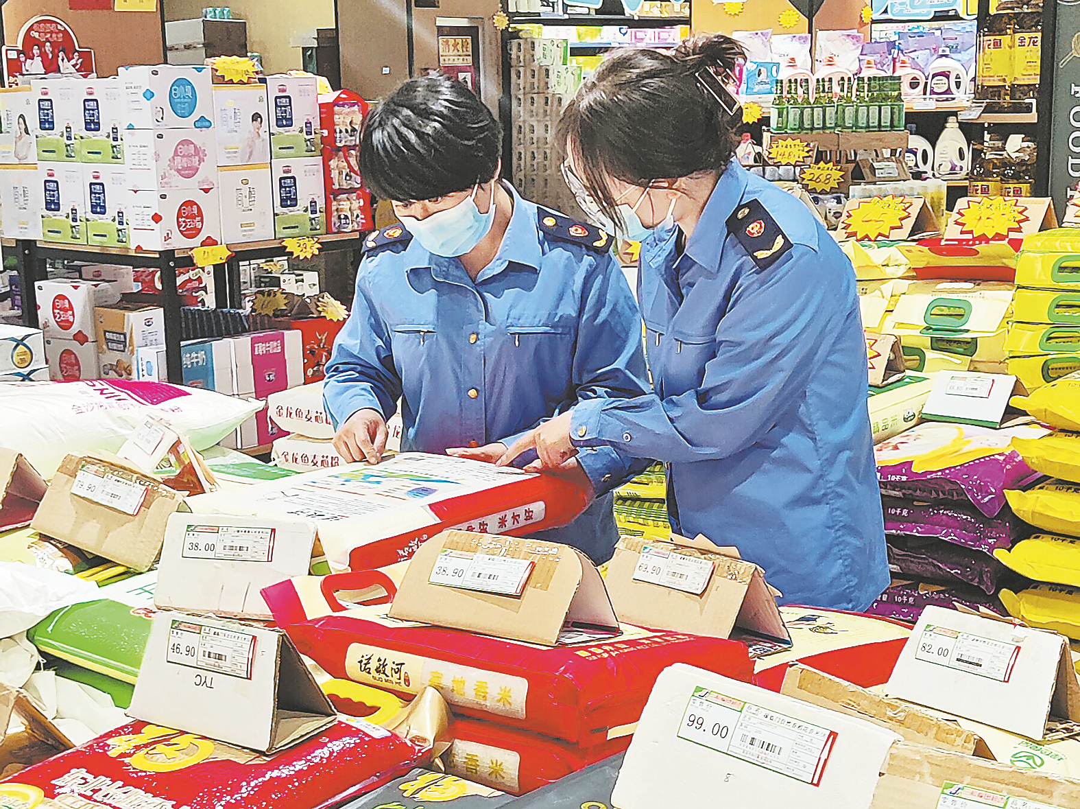 今年以來(lái),商南縣加強(qiáng)行政指導(dǎo)和監(jiān)督檢查,強(qiáng)化商標(biāo)品牌保護(hù),維護(hù)規(guī)范市場(chǎng)秩序。圖為近日縣市場(chǎng)監(jiān)督管理局執(zhí)法人員正在超市檢查袋裝大米商標(biāo)情況。