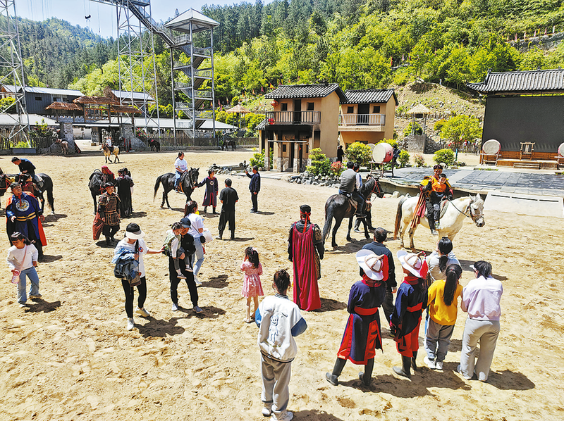 陽城驛景區(qū)也吸引了河南、寧夏、甘肅等地大批游客前來參觀游覽,游客量及營業(yè)收入均創(chuàng)歷史新高。為滿足游客需求,該景區(qū)特推出一天三場《風(fēng)云闖王寨》馬戰(zhàn)演藝,觀眾席上人頭攢動,座無虛席。