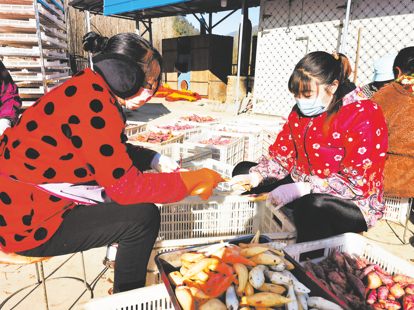 清洗、削皮、蒸熟、切條、烘干、晾曬……經(jīng)過一道道工序后,不起眼的紅薯華麗變身為晶瑩剔透、香甜軟糯的紅薯干。加工現(xiàn)場,村民們有說有笑,人人臉上都洋溢著幸福的笑容,和冬日的暖陽融為一體,為美麗的鄉(xiāng)村增添了一份生機活力。