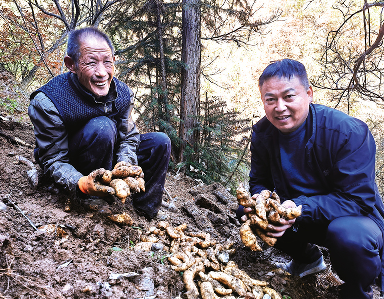 “快看,這窩天麻好,長得又多又大!”11月7日,商南縣清油河鎮(zhèn)團坪村村民吳成華小心翼翼地用鋤頭將天麻從泥土里挖出來,清理干凈后,裝進一旁的袋子里。