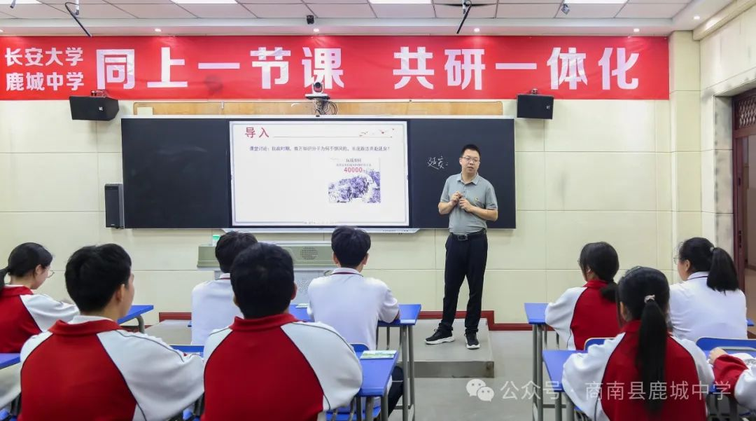 5月31日,長安大學(xué)和鹿城中學(xué)“同上一節(jié)課,共研一體化”大中小思政課一體化教學(xué)研討活動在鹿城中學(xué)開展。長安大學(xué)黨委副書記、副校長彪曉紅,長安大學(xué)馬克思主義學(xué)院院長陳懷平,副院長王立洲,思政課名師工作室8名優(yōu)秀教師,商南縣教育和體育局黨組成員、鹿城中學(xué)黨總支書記劉興鋒,鹿城中學(xué)相關(guān)領(lǐng)導(dǎo)、思政教師、教研組長以及丹南大學(xué)區(qū)各校思政教研組長參加活動。鹿城中學(xué)校長冀雙權(quán)主持研討活動。本次活動分為思政示范課、點評思政課、教學(xué)研討會、探討一體化實施方案四個環(huán)節(jié)。