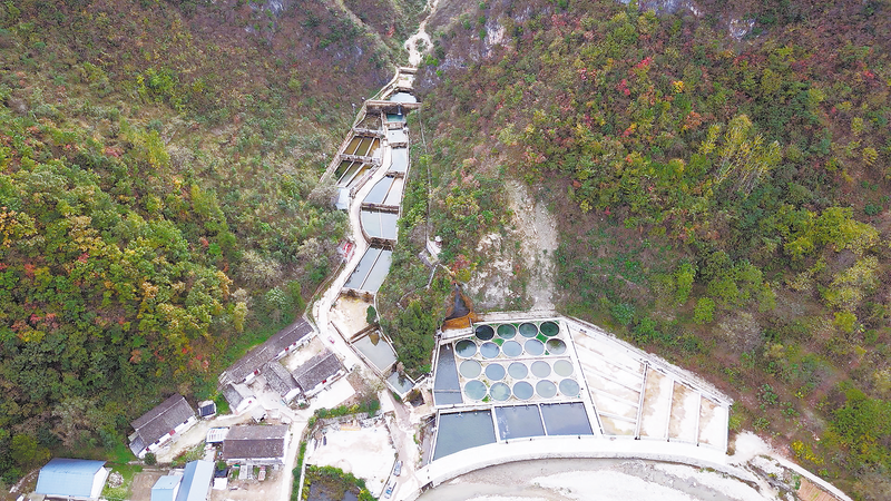 在中棚社區(qū)冷水魚(yú)養(yǎng)殖場(chǎng),一排排整齊的魚(yú)池在陽(yáng)光映照下波光粼粼,成群的魚(yú)兒在池中嬉戲。冷水魚(yú)養(yǎng)殖場(chǎng)主要從事冷水魚(yú)類養(yǎng)殖、種苗繁育、魚(yú)產(chǎn)品加工及垂釣觀光。通過(guò)“龍頭企業(yè)+基地+農(nóng)戶”模式,將當(dāng)?shù)剞r(nóng)戶通過(guò)務(wù)工、運(yùn)輸、土地流轉(zhuǎn)、資金入股、開(kāi)辦全魚(yú)宴、電商銷(xiāo)售等多種渠道融入冷水魚(yú)養(yǎng)殖中,實(shí)現(xiàn)年人均增收2000元。
