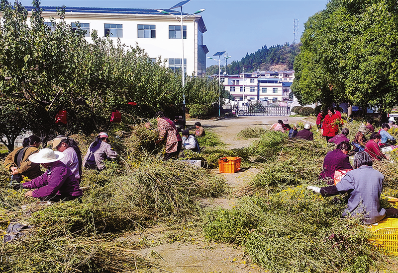“種植菊花好處多,是一‘菊’多得。明年,我們準備擴大種植面積,把小菊花當成產(chǎn)業(yè)來做大做強,帶領大家致富。”費東霞說,“公司今年在試馬鎮(zhèn)、富水鎮(zhèn)種植藥用菊花2000多畝,平均每畝可產(chǎn)鮮菊花1000多斤,收入4000多元?,F(xiàn)在每天有300多名工人在基地進行采摘,產(chǎn)量15噸、產(chǎn)值10萬元以上。預計公司今年干花總產(chǎn)量有150噸左右,產(chǎn)值大約600萬元。村民每人每天收入100元以上,300多人每天需要付工費3萬元左右。”