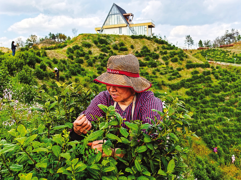 采茶工搶抓時令采摘明前茶。