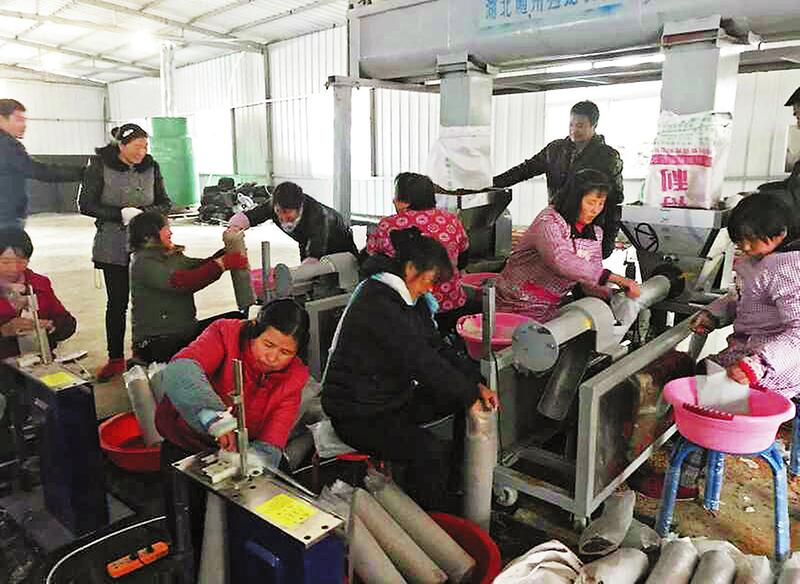 目前的君子澗村已經(jīng)建成50萬袋反季節(jié)香菇基地,1000平方米的廠房里兩臺裝袋加工機(jī)器、3臺滅菌灶旺季一天可生產(chǎn)1萬袋菌種,同時建起了4個烘干爐和1個儲量5000公斤的冷庫。