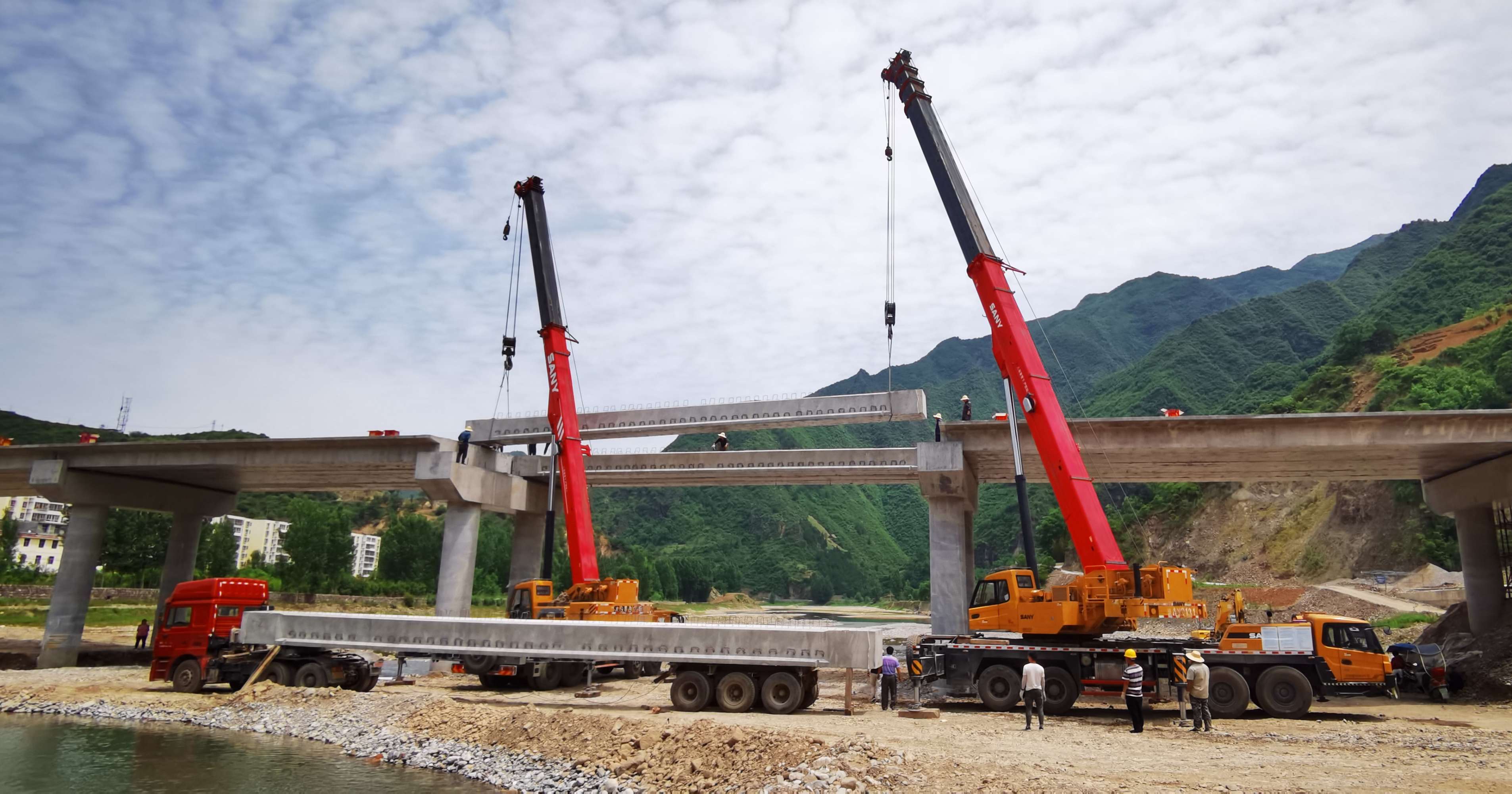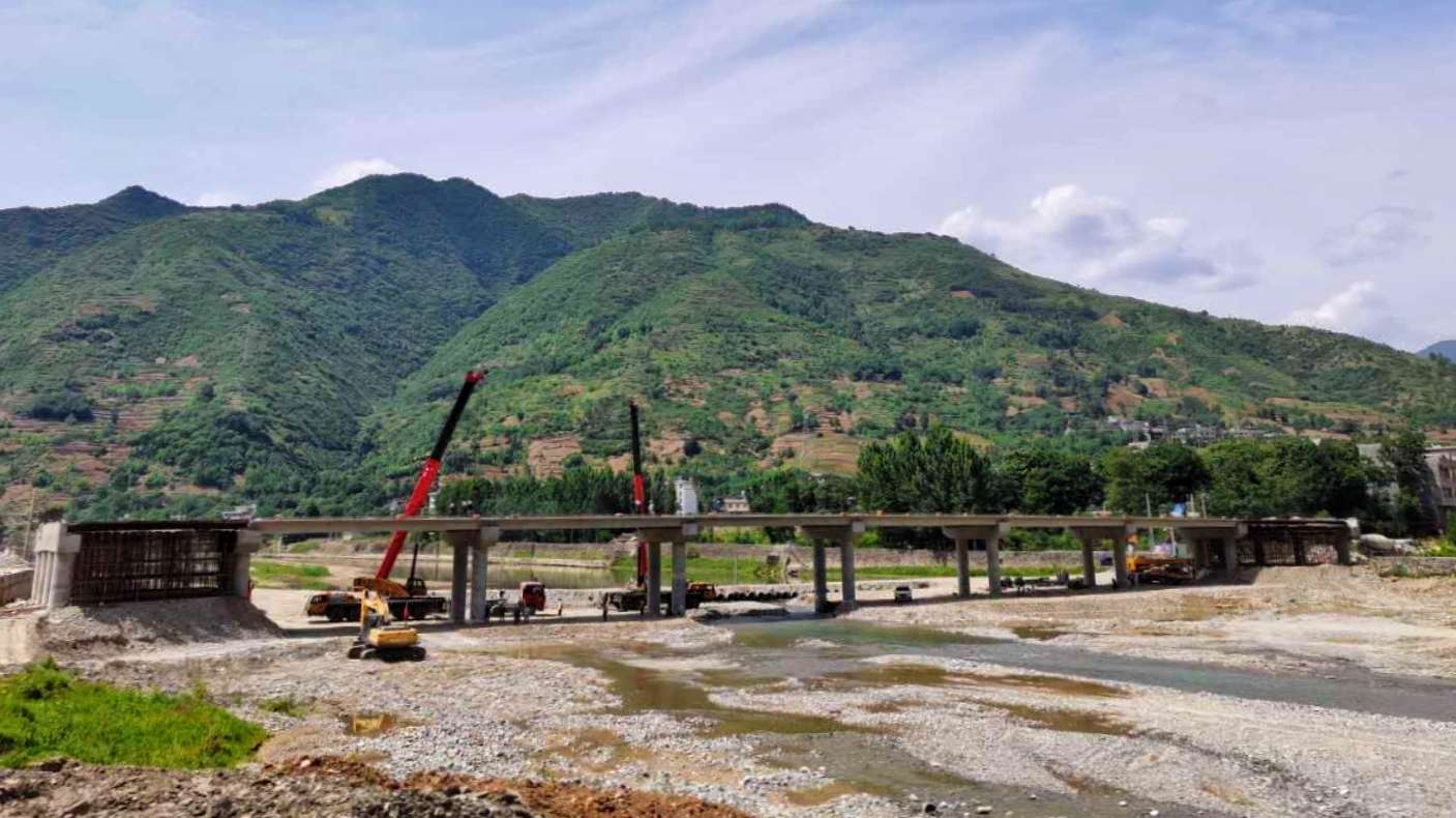 “金錢河畔,每歲夏秋之際,時(shí)有山洪聚至,一時(shí)蛟走龍騰,狀若大江,南北阻隔,士農(nóng)工商唯有望洋興嘆,不可逾越…”這是寫在窯溝口鐵索橋邊上的修繕記。然而隨著5月21日最后一片空心板梁緩緩地落在山陽縣南寬坪鎮(zhèn)窯溝口村金錢河大橋6號(hào)至7號(hào)橋墩上,山陽農(nóng)村公路最長(zhǎng)跨河大橋通車進(jìn)入倒計(jì)時(shí),預(yù)示著窯溝口村村民世世代代“出行過吊橋,車輛趟河水”的時(shí)代即將成為歷史。