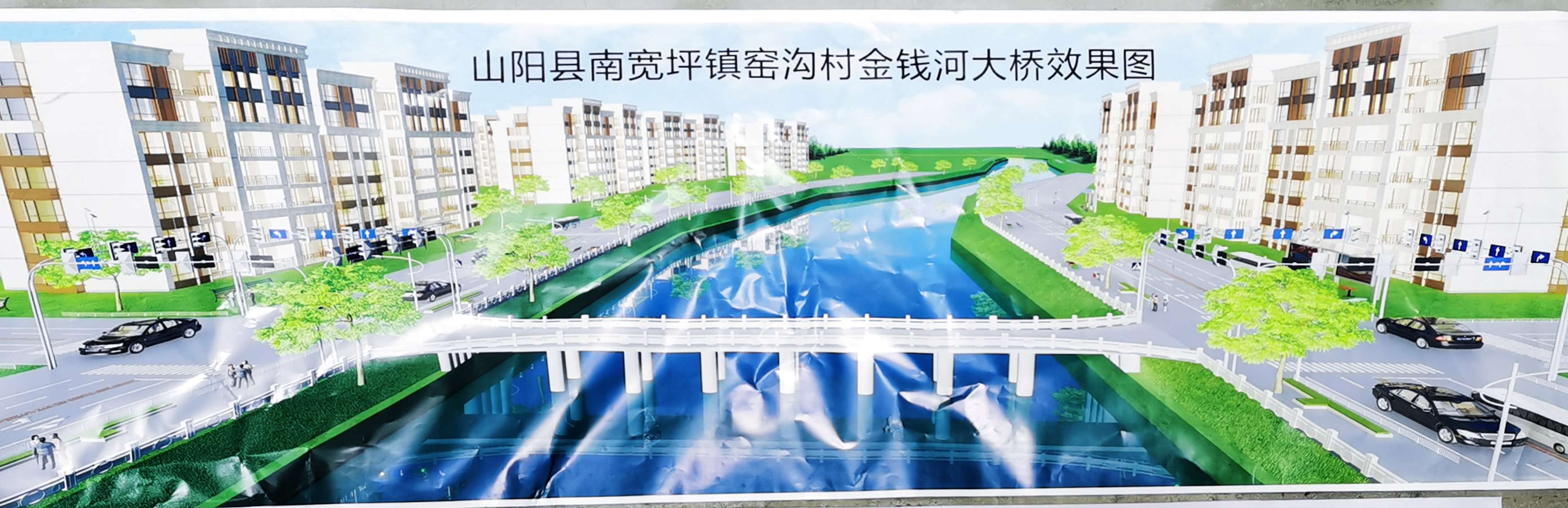 山陽縣南寬坪鎮(zhèn)窯溝口村金錢河大橋建設(shè)工程位于南寬坪鎮(zhèn)窯溝口村,橋梁起點(diǎn)順接規(guī)劃南寬坪鎮(zhèn)廣場(chǎng)路南段,與G242南寬坪過境段形成“十字”平交,跨越金錢河,終點(diǎn)與窯溝口村通村水泥路平交,橋梁全長(zhǎng)152延米,橋梁寬度凈7.5米+2×1.5米人行道系。該項(xiàng)目于2019年9月開工建設(shè),預(yù)計(jì)2020年6月下旬通車。