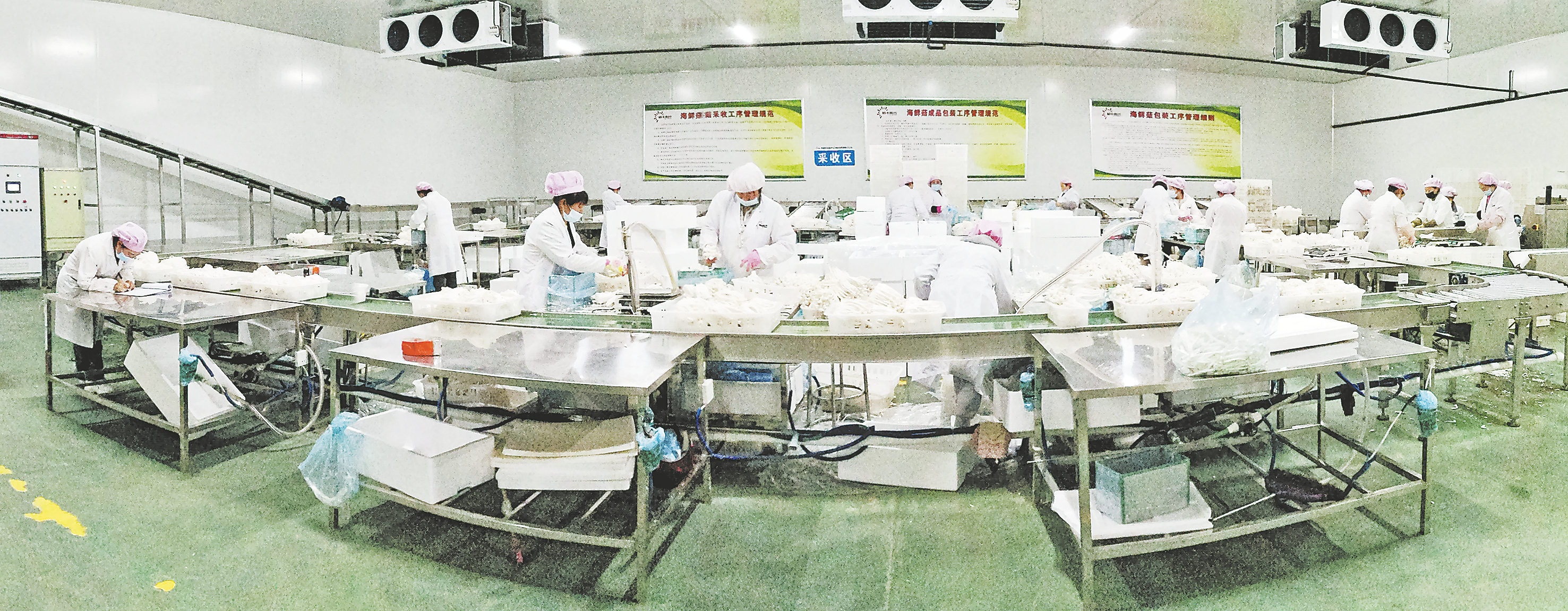 日產(chǎn)4萬(wàn)袋的和豐陽(yáng)光海鮮菇生產(chǎn)線上,工人們正在稱重包裝。