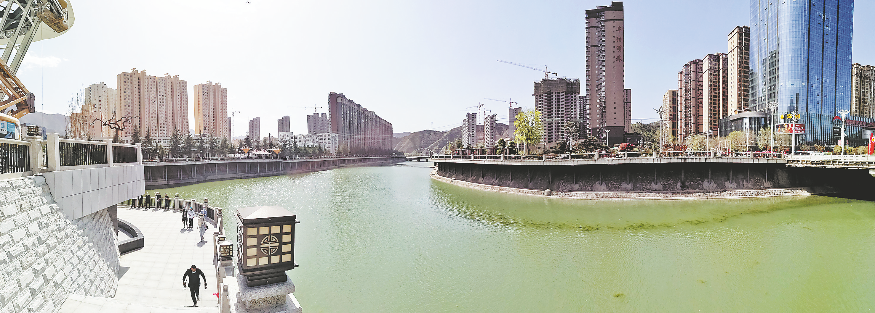 天光云影,綠水穿城,一河兩岸風(fēng)景宜人。