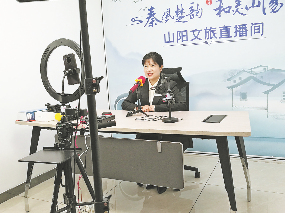 游客服務(wù)中心直播間內(nèi),網(wǎng)紅主播妙語(yǔ)連珠,宣傳山陽(yáng)、推銷農(nóng)產(chǎn)品,為鄉(xiāng)村振興貢獻(xiàn)著一臂之力。