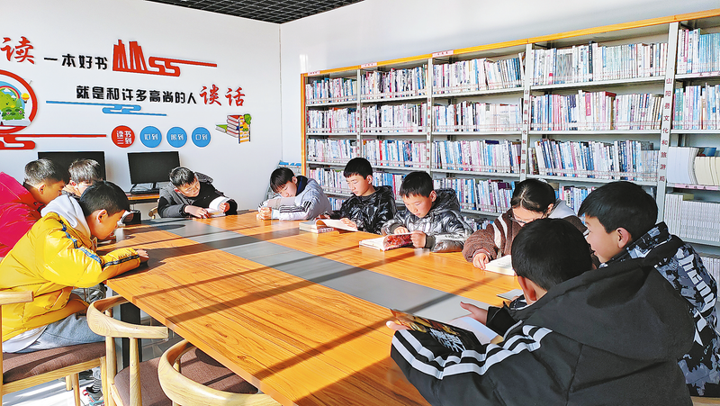在山陽縣城關(guān)街道豐東新區(qū)社區(qū)公益課堂上,孩子們在大學生志愿者帶領(lǐng)下認真閱讀。