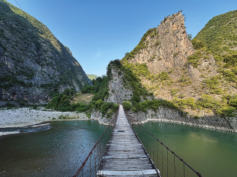 從康家?guī)X村沿道路向東南方向前進,接連經(jīng)過幾個S彎后,來到戶家塬鎮(zhèn)和楊地鎮(zhèn)的交界處,只見藍天碧水間,一座設(shè)計簡約、氣勢恢宏的大橋橫亙在金錢河上,展開臂膀連接兩座大山,天塹變通途。大橋上有多名游客打卡拍照,有人擺造型合影,還有人放飛無人機記錄美景。