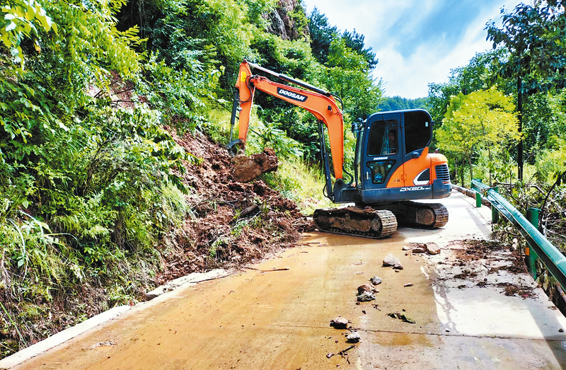 7月22日,山陽(yáng)縣王閻鎮(zhèn)靳家河村水毀路段,鎮(zhèn)村干部正組織人員采用“人工+機(jī)械”方式,抓緊修復(fù)和搶通公路,全力以赴保障群眾恢復(fù)正常生產(chǎn)生活。 (本報(bào)通訊員 蔡彥君 攝)