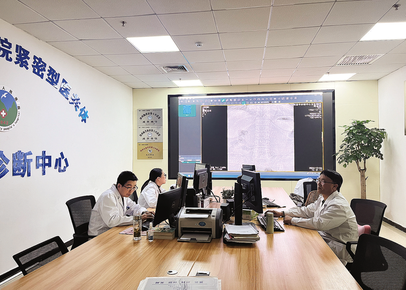 縣醫(yī)院診斷中心內(nèi),影像醫(yī)生正在對(duì)傳來影像進(jìn)行診斷。