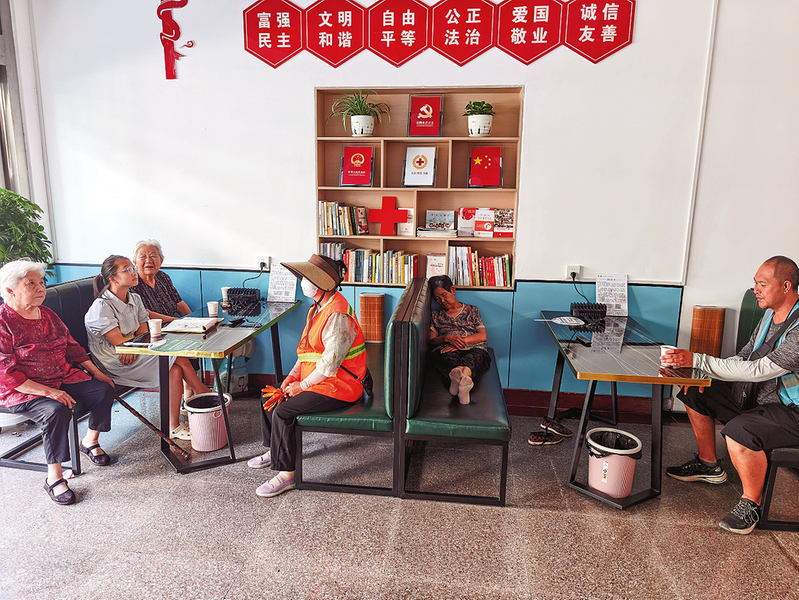 住在附近的楊燕珍老人,常和老朋友們一起來(lái)這里納涼聊天;上小學(xué)五年級(jí)的李皓螢,暑期與同學(xué)相約在此讀書學(xué)習(xí);出租車司機(jī)王昊剛則習(xí)慣在路過時(shí)接上一杯水解渴。