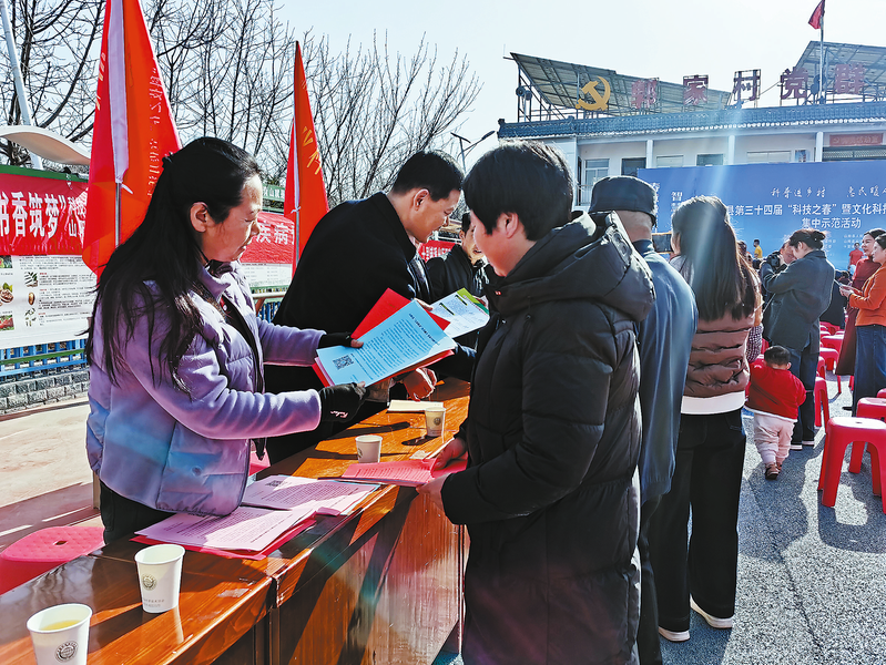 近日,山陽(yáng)縣啟動(dòng)第三十四屆“科技之春”宣傳月暨文化科技衛(wèi)生“三下鄉(xiāng)”集中示范活動(dòng)。圖為志愿者在十里鋪街道郭家村咨詢(xún)點(diǎn)向群眾發(fā)放資料,普及法律、健康等方面的知識(shí),為群眾提供義診服務(wù)和健康咨詢(xún)。(本報(bào)記者 楊若陽(yáng) 攝)
