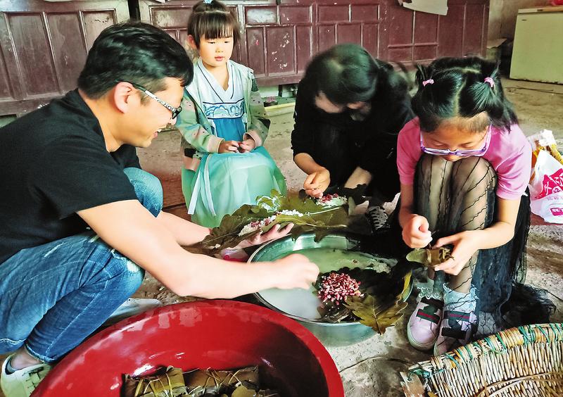 張芳棉家住商州區(qū)沙河子鎮(zhèn),由于三個(gè)兒女在城區(qū)工作生活,因此這些年她一直都在城里幫忙照看孫子、孫女,很少回老家。但每年端午節(jié)前,張芳棉都會提前到菜場去買好槲葉、蘆葦葉、小米、黃米、糯米、大棗、四季豆等材料,提前一天回到老家煮好槲葉、蘆葦葉、馬蓮,泡好米、四季豆。在端午節(jié)前那個(gè)周末,這一家人不管多忙,都會聚在一起包粽子。“自己包的粽子,好吃還放心,比在外面買的好多了。”張芳棉高興地說,“過節(jié)了大家都回來,多熱鬧呀。”