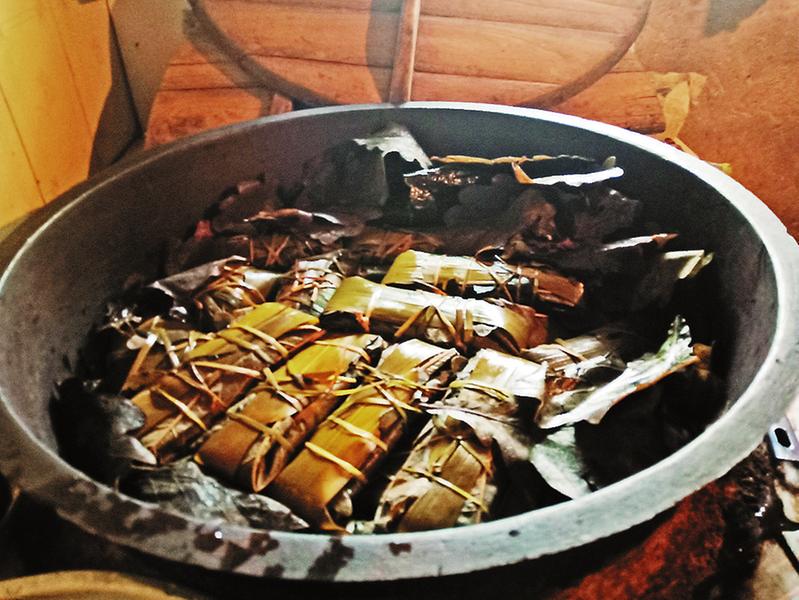 全家人忙了3個(gè)多小時(shí),所有的粽子終于包好了。下午4點(diǎn)鐘,吃過飯后,粽子放進(jìn)了大鐵鍋,灶下柴火燃起,“粽子要過夜才香,明天早上就可以撈出來了。”張芳棉高興地說,“明天就可以吃了。”