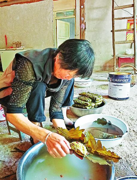 張芳棉老人用心給家人包粽子