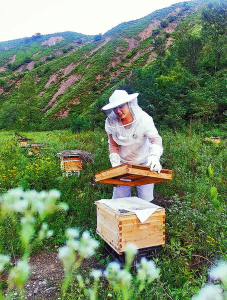 說干就干。今年,李偉利先是在村里拜師學(xué)習(xí)養(yǎng)蜂技術(shù)。5月份,他不顧母親和媳婦反對,投資6萬多元購買了70多箱土蜂和配套的物品,選擇了家鄉(xiāng)附近一條人跡罕至、名叫襄王溝的山溝開始養(yǎng)蜂。“這個(gè)地方是師傅推薦的,因?yàn)閹煾嫡f他經(jīng)過這么多年觀察,襄王溝就是周圍所有蜜源的正中心位置,蜜蜂采蜜時(shí)飛行的距離比較短,工作效率就比較高。加上周圍幾公里都沒有人居住,是一個(gè)原生態(tài)、純天然、無污染的好地方。”李偉利說。