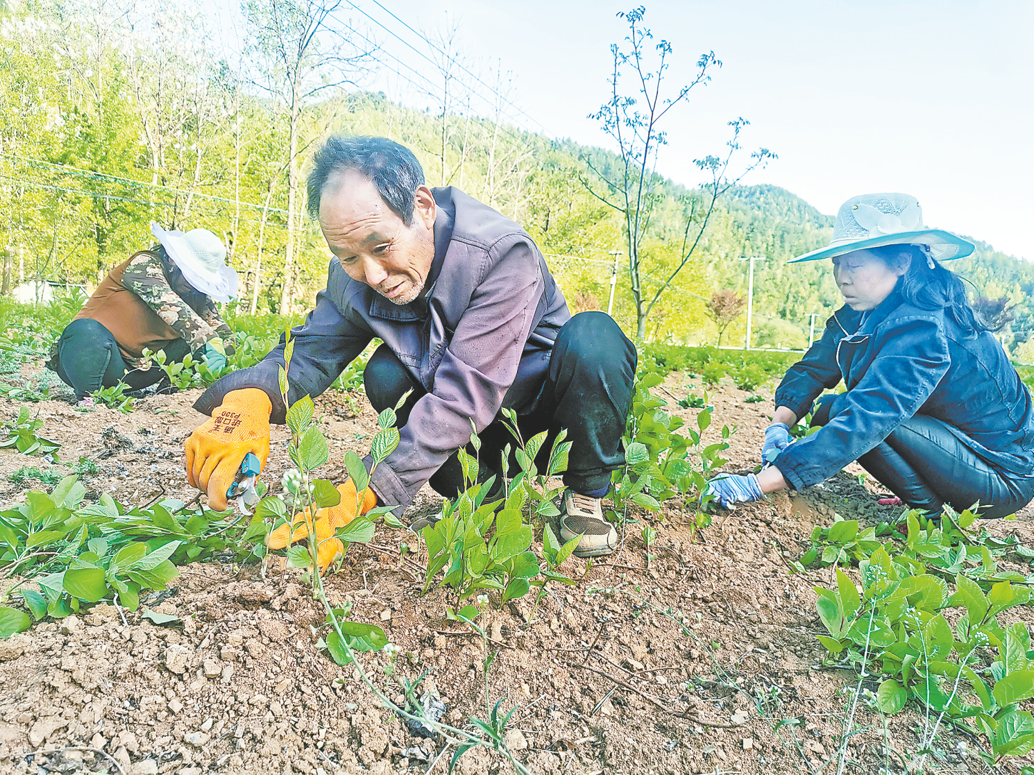 村民在五味子基地剪枝