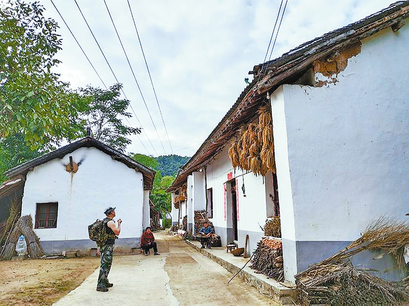 沿著水泥路前行,核桃板栗鋪滿山坡,林間套種莊稼蔬菜。迎面遇見一位老人,告訴我們郭溝嶺上原來有10多戶人家,目前只有幾個老人在家了。