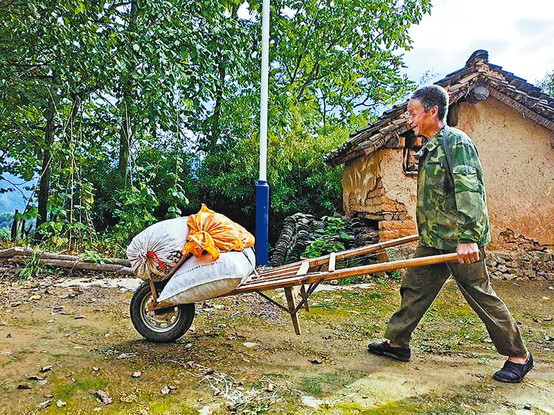 推著獨輪車的山民