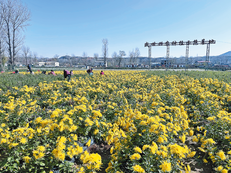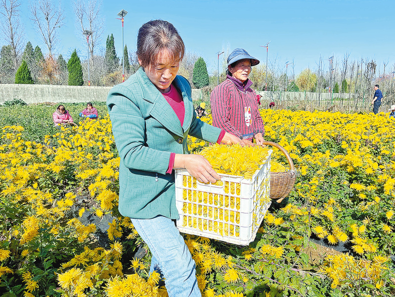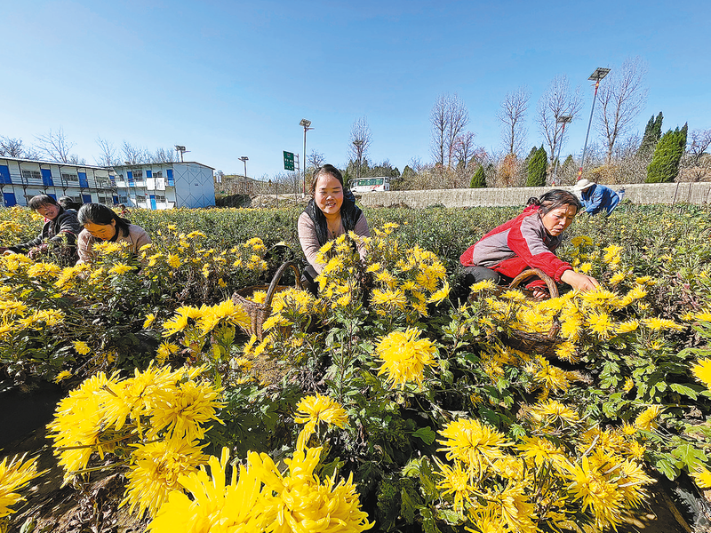 村民忙著采菊花