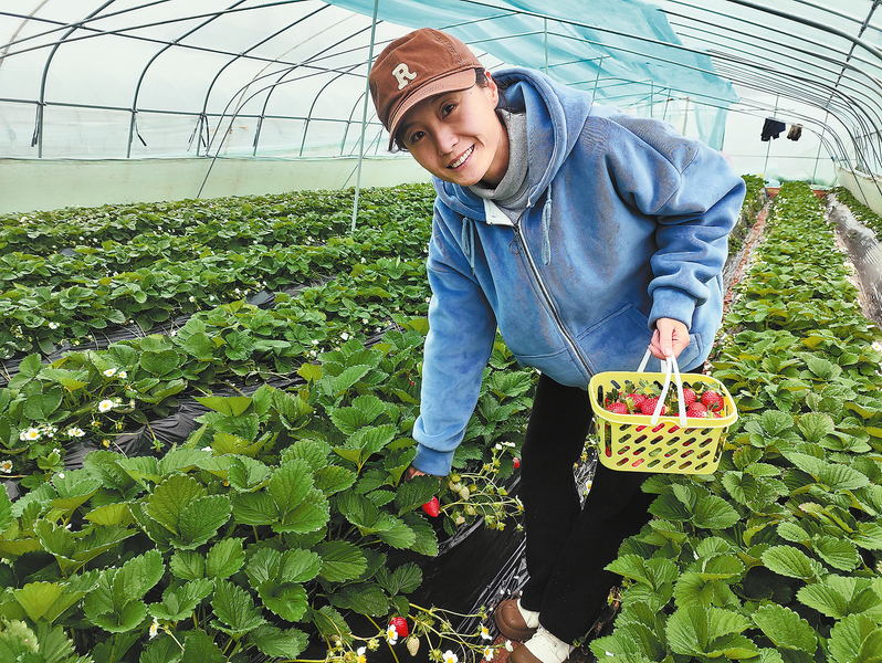 11月13日,位于商州區(qū)夜村鎮(zhèn)綠緣現(xiàn)代農(nóng)業(yè)園的草莓種植大棚里,種植戶正在采摘今年11月份第一茬上市的草莓。眼下,我市冬草莓陸續(xù)成熟,搶“鮮”上市。 (本報記者 楊 鑫 攝)