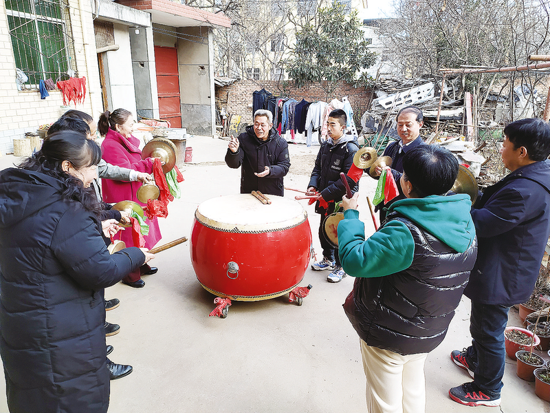 “紫荊鼓樂雖是地方民間音樂,卻深受當(dāng)?shù)乩习傩障矏邸7昴赀^(guò)節(jié)或是群眾祝壽的喜慶時(shí)刻,一通咚咚作響的鑼鼓聲響起,村里男女老少聞聲趕來(lái)湊熱鬧,聽一聽這鼓樂,大家就會(huì)心情舒暢。”2月13日,郭錄勛滿臉笑意地說(shuō),他自幼便對(duì)鼓樂情有獨(dú)鐘,從爺爺手中接過(guò)鼓槌后,不知不覺已敲了50多年。